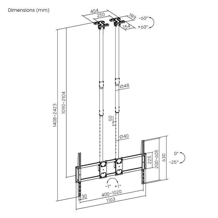Supporting an industry-leading 120 kg capacity, the TVB-116 utilizes a reinforced dual-column design. This dual-telescopic system provides unparalleled stability and allows for independent adjustment, making it the premier choice for mounting large-format screens on both flat and complex sloped ceilings.